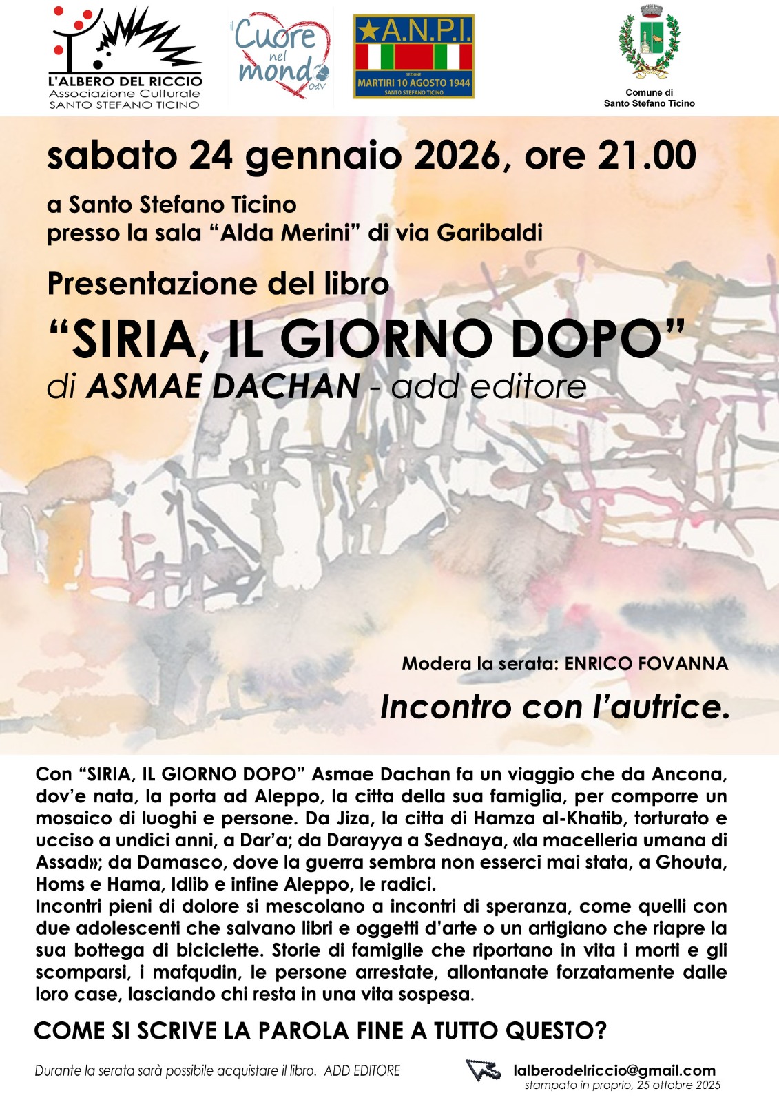 L’autrice ASMAE DACHAN è una giornalista, fotografa e scrittrice italo-siriana, docente a contratto all’Università̀ degli Studi di Macerata. L’incontro, per la presentazione del libro, previsto per il giorno 24 gennaio è gratuito.